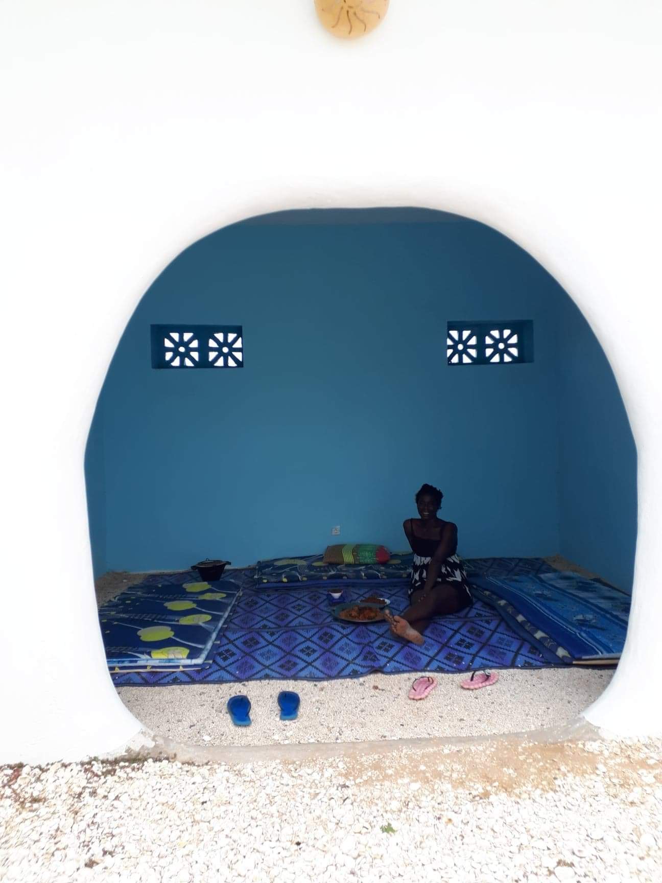Dans la salle à manger de Kër d'or, on ne déjeune pas ni ne dîne, on y pique-nique, les orteils jouant avec le sable et les coquillages, le regard noyé dans le bleu du grand 8.